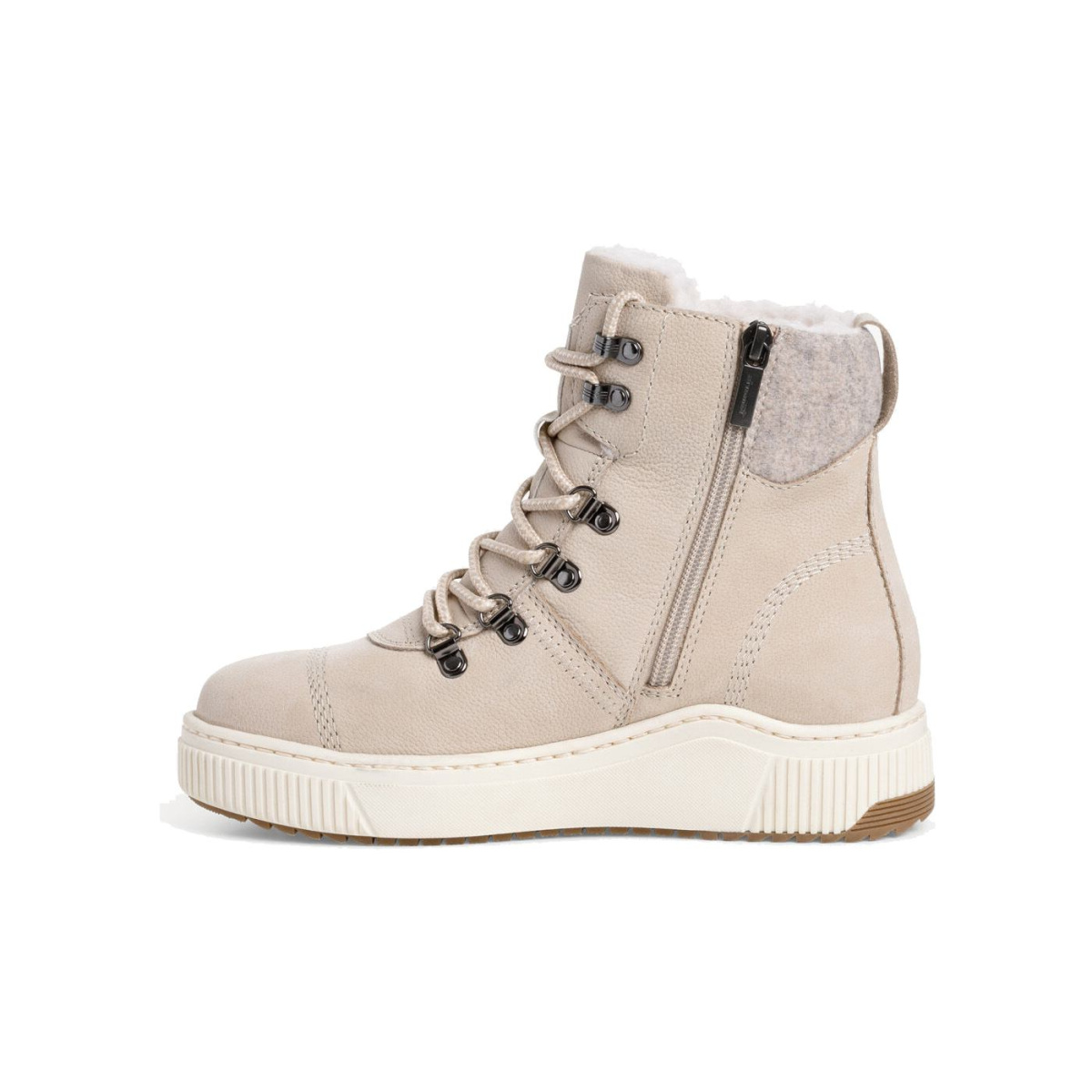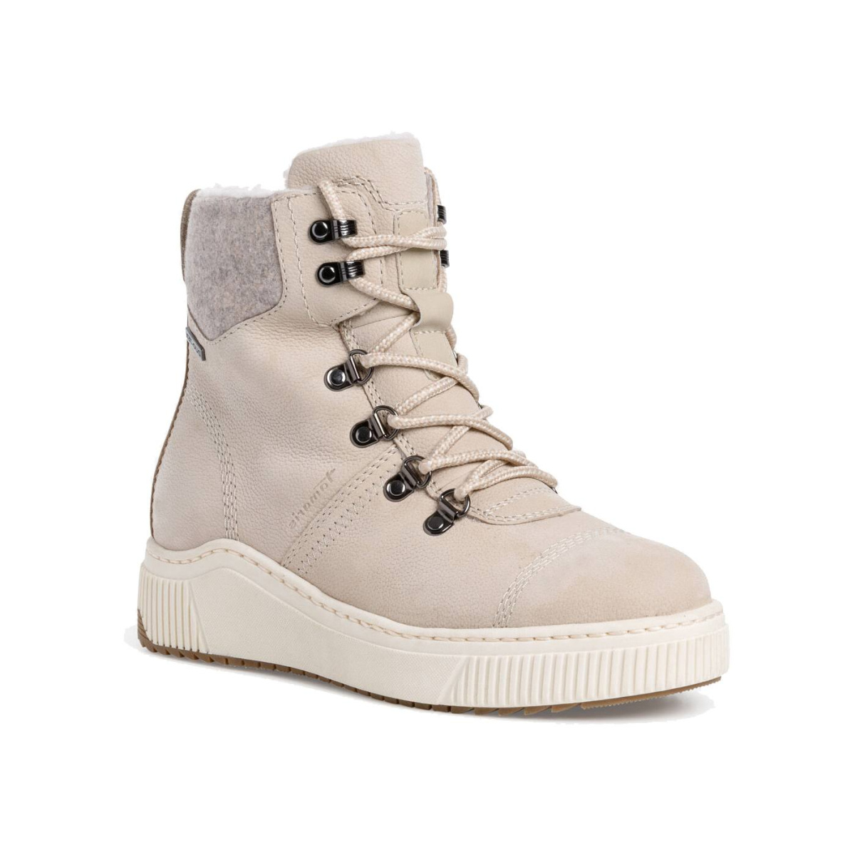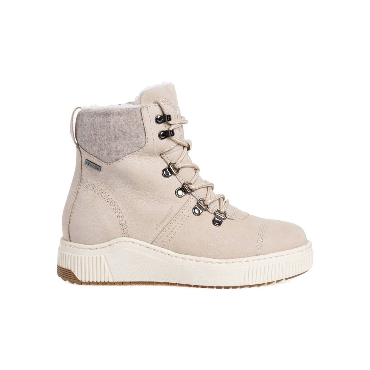 В этой модели Tamaris использована мембрана Duo-Tex, которая выполнена из специального материала, обладающего одновременно водоотталкивающими и воздухопроницаемыми свойствами. Такой материал создает своеобразный защитный слой, предотвращающий попадание влаги вовнутрь, тем самым обеспечивая сухость ног даже во время дождя или снега. При этом влага, образующаяся внутри обуви, абсорбируется и выводится наружу.