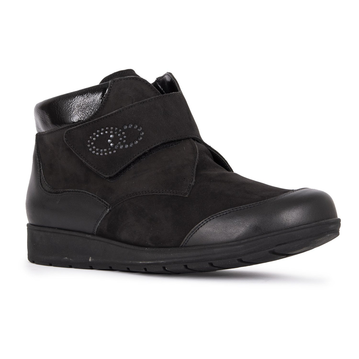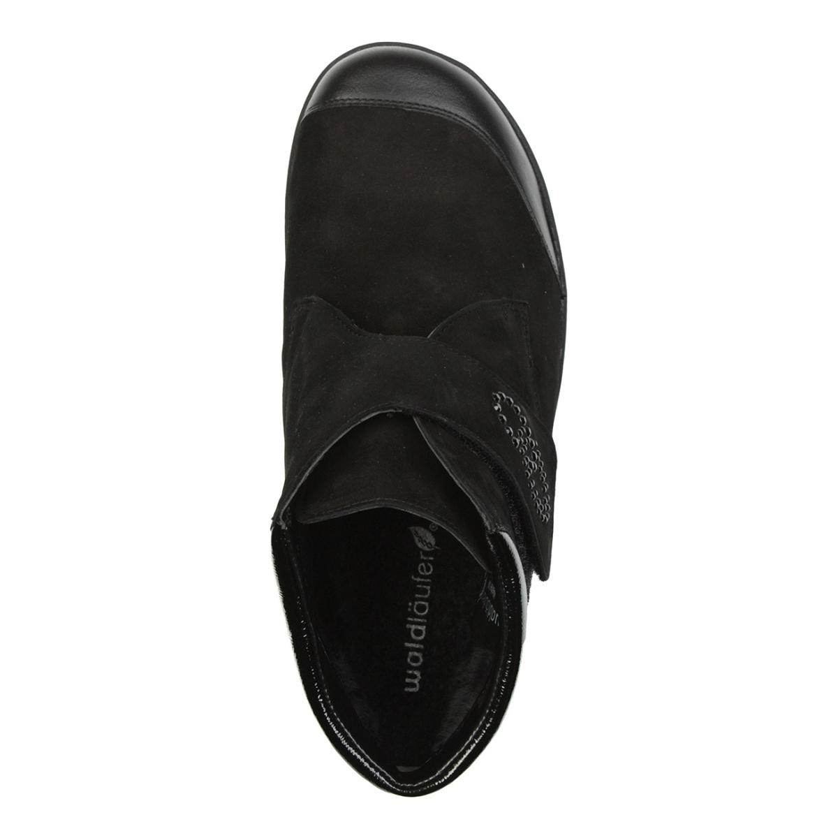 Женские ботинки бренда Waldläufer шириной M для очень широкой стопы впечатляют сочетанием черного материала и женственными деталями. Мягкая замша дополнена вставками из гладкой и лакированной кожи, а стразы добавляют изящества. Практичная застежка-липучка обеспечивает надежную фиксацию. Благодаря нескользящей подошве вы можете безопасно пережить холодный сезон.