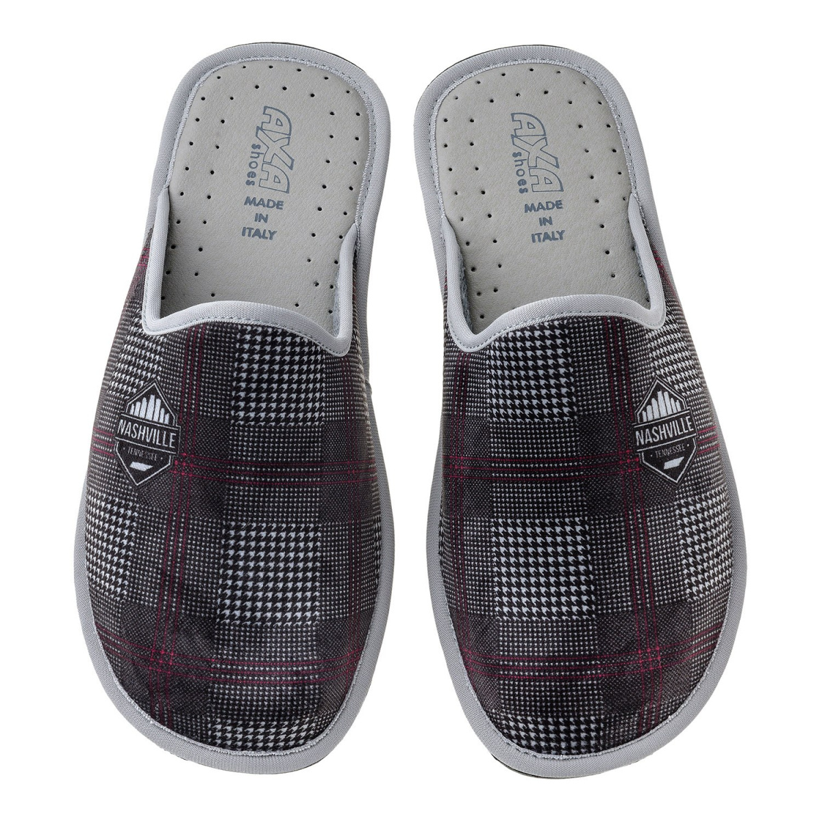 Комнатные удобные и легкие мужские тапочки AXA Cell серого цвета с верхом из мягкого текстиля. Узор классическая клетка. Антискользящая подошва из полиуретана. Антибактериальные стельки с угольным напылением предотвращают появление неприятного запаха и впитывают излишки влаги ваших ног. Обувь AXA снижает усталость ног и доставляет удовольствие при носке! Такая модель будет безупречным подарком на любой праздник!