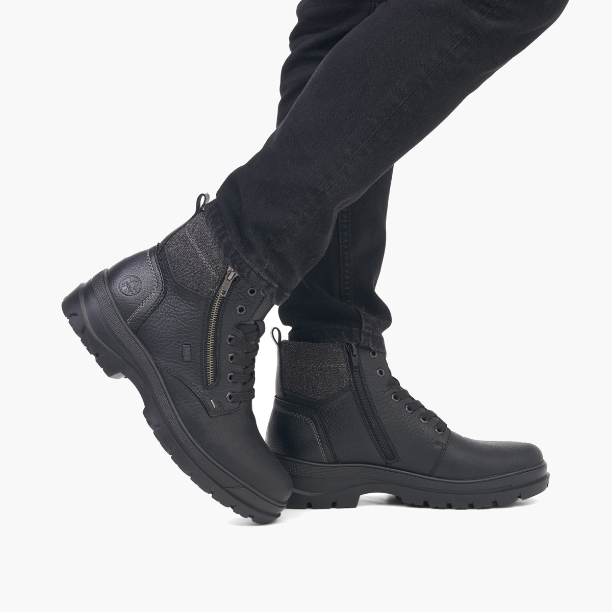 Элемент Rieker Flip-Grip состоит из складывающейся застежки, встроенной в подошву и оснащенной высококачественными шипами с одной стороны. При необходимости шипы можно легко сложить. Благодаря продуманной интеграции в подошву с протектором, это не влияет на комфорт при ходьбе.