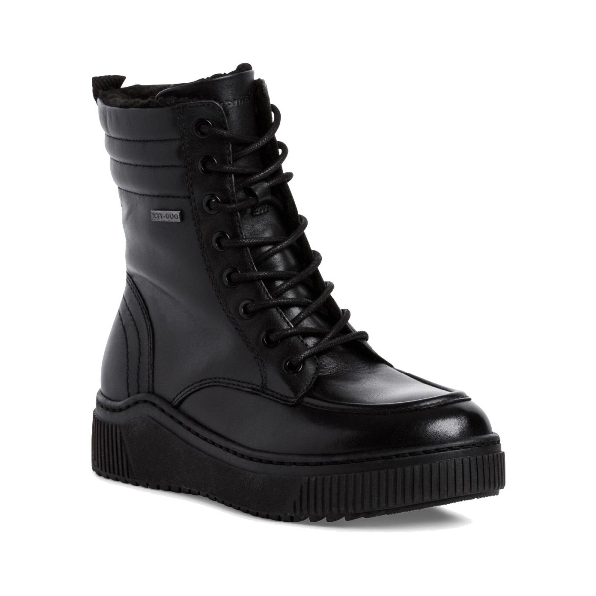 В этой модели Tamaris использована мембрана Duo-Tex, которая выполнена из специального материала, обладающего одновременно водоотталкивающими и воздухопроницаемыми свойствами. Такой материал создает своеобразный защитный слой, предотвращающий попадание влаги вовнутрь, тем самым обеспечивая сухость ног даже во время дождя или снега. При этом влага, образующаяся внутри обуви, абсорбируется и выводится наружу.