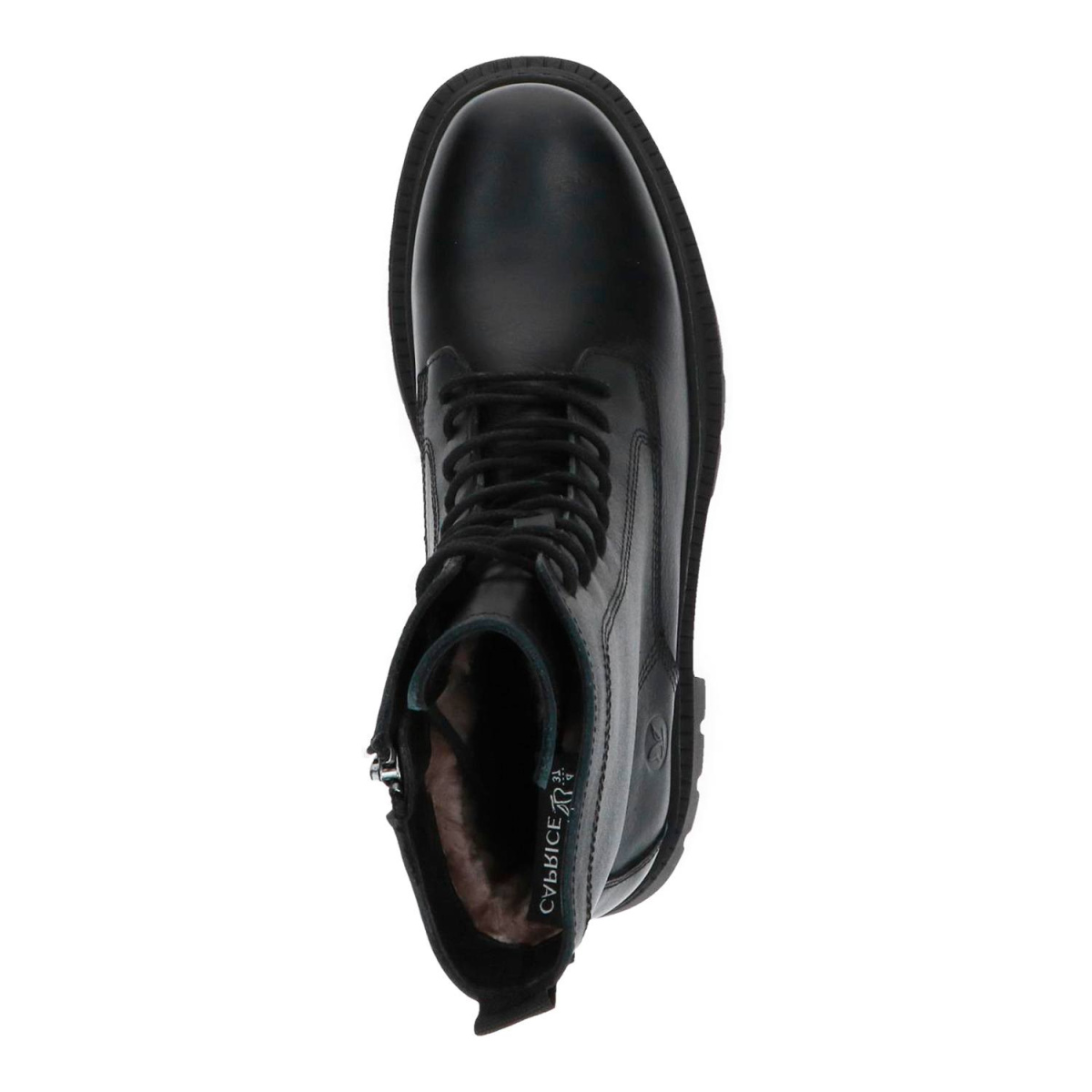 Ботинки женские зимние из натуральной кожи, с натуральном мехом, от немецкого бренда Caprice. Лаконичный дизайн дополнен актуальной высокой подошвой с крупным протектором.