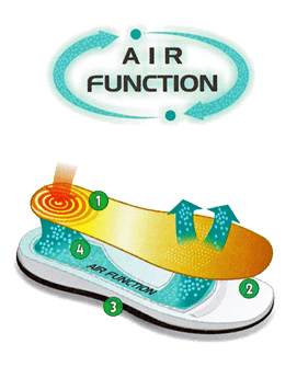 Технология Air Function. Система "воздушной подушки" - это система каналов, по которым при ходьбе воздух циркулирует между пяткой и носовой частью обуви.