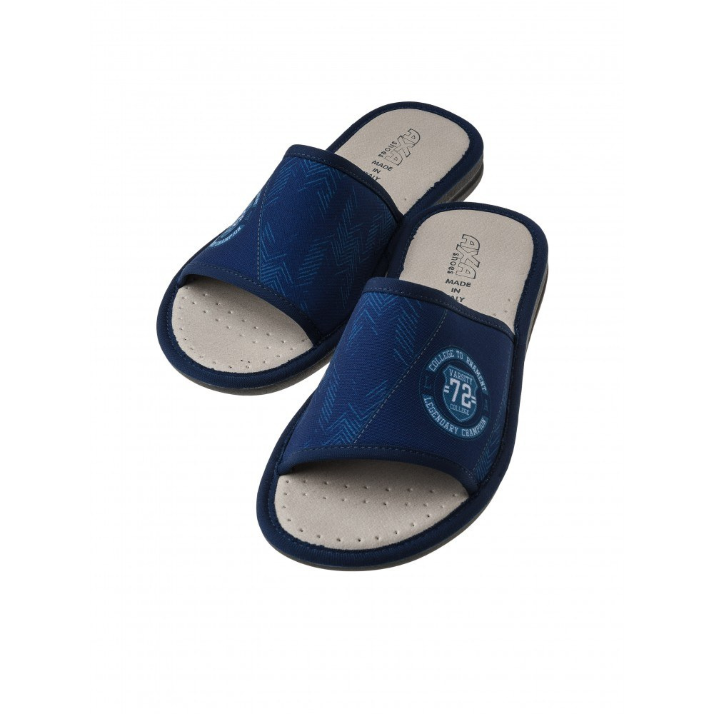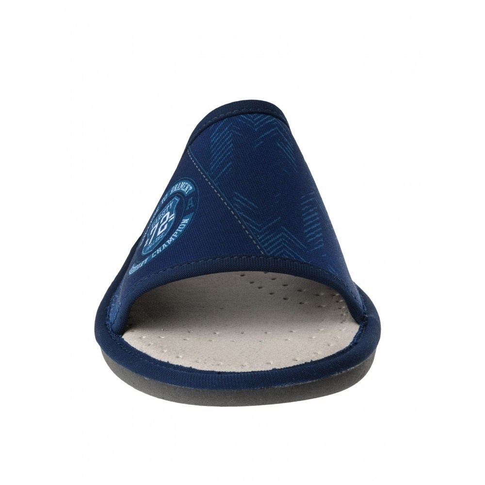 Мужские открытые домашние тапочки AXA shoes — это комфортная обувь для дома, в которой применены уникальные запатентованные технологии. Верх выполнен из хлопка высокого качества. Модель представлена в синем  цвете.