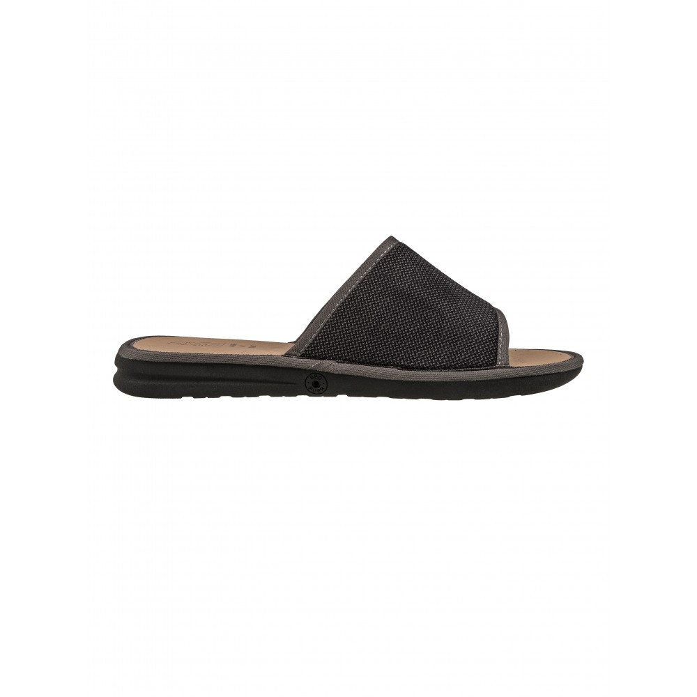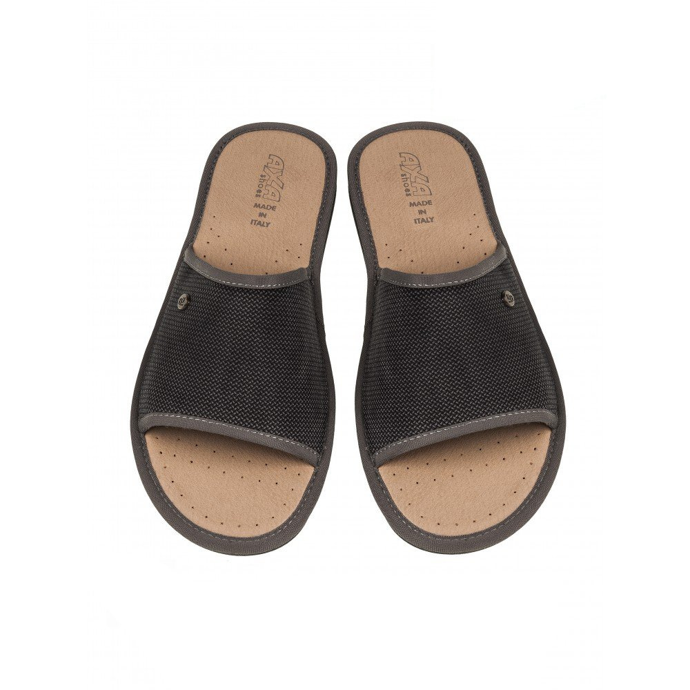 Мужские открытые домашние тапочки AXA shoes — это комфортная обувь для дома, в которой применены уникальные запатентованные технологии. Верх выполнен из хлопка высокого качества. Модель представлена в сером цвете.